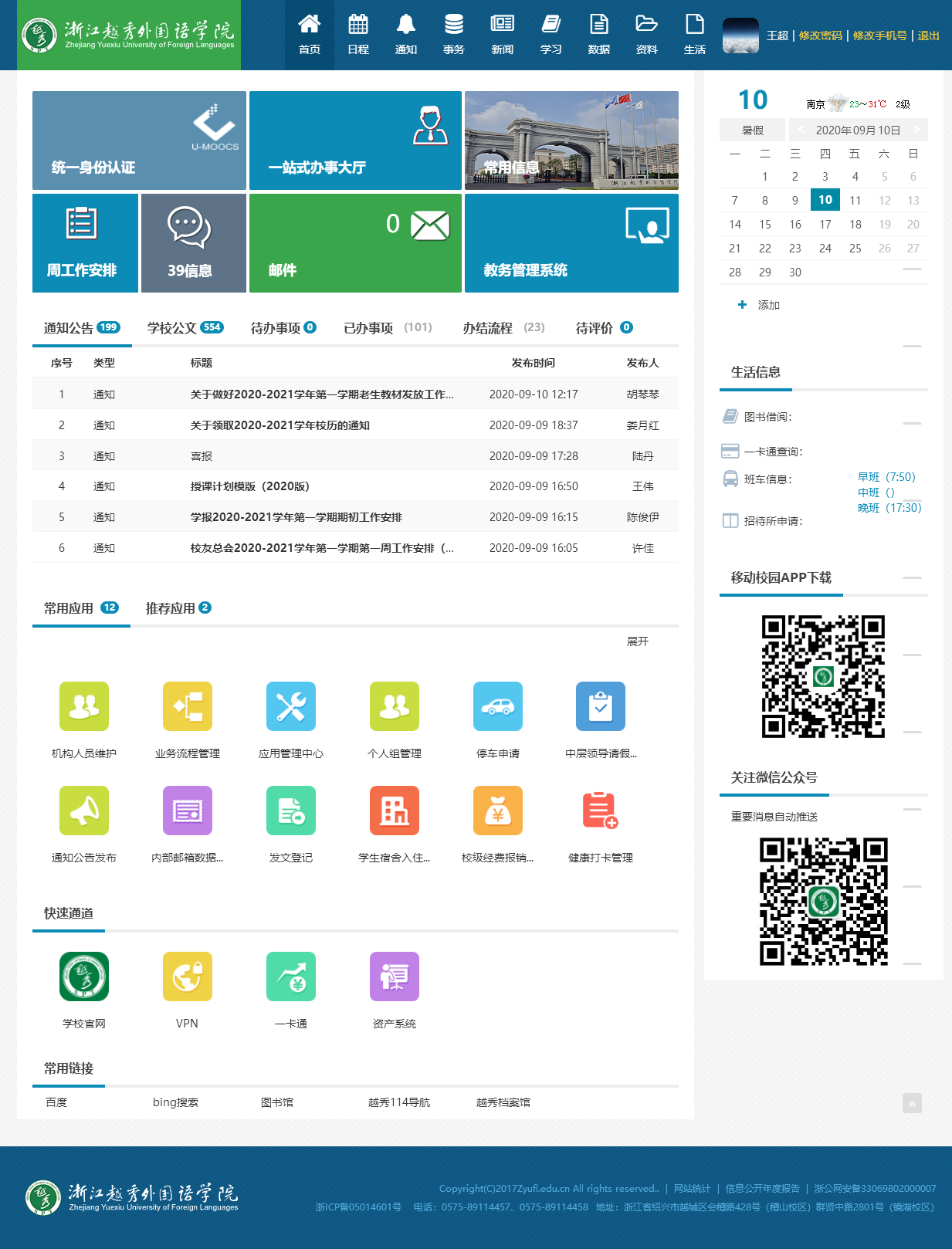 从人性化管理出发,学校针对原OA系统进行了数据迁移与查询服务,保证了历史数据与业务在一定时间的查询服务。另外,原有OA系统的一些邮件、公告功能也做了分拆,采用新的技术平台予以实现。