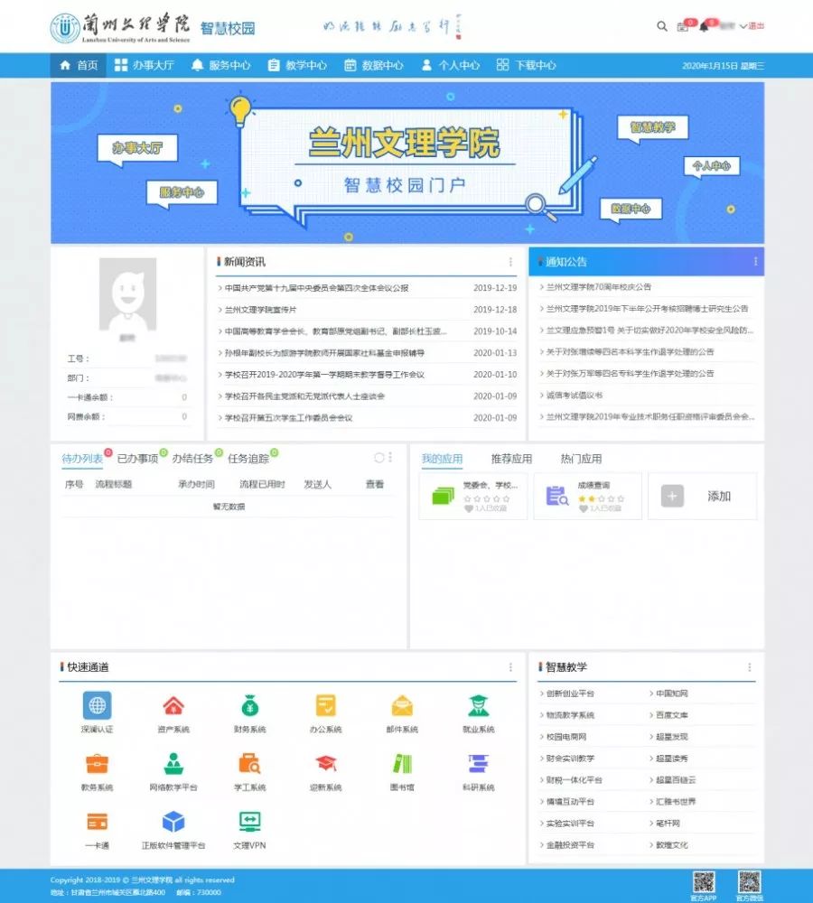 线上,PC、APP、微信服务号“三位一体”,为兰州文理学院的广大师生提供跨终端、一致性的服务,满足其移动办事、办公的需求。