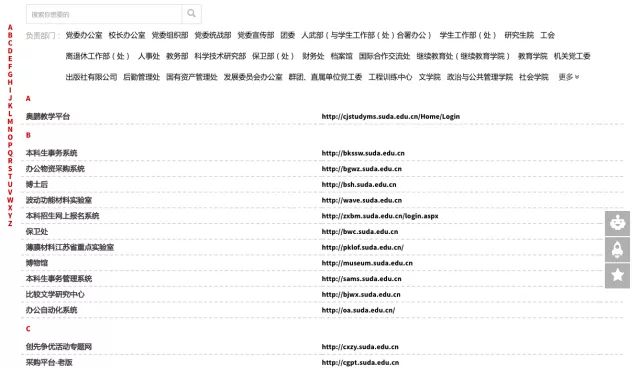 解决师生查找校内系统、网站无门的困境,提供校内系统、网站全攻略,更支持部门、首字母、搜索快速定位,一键直达。