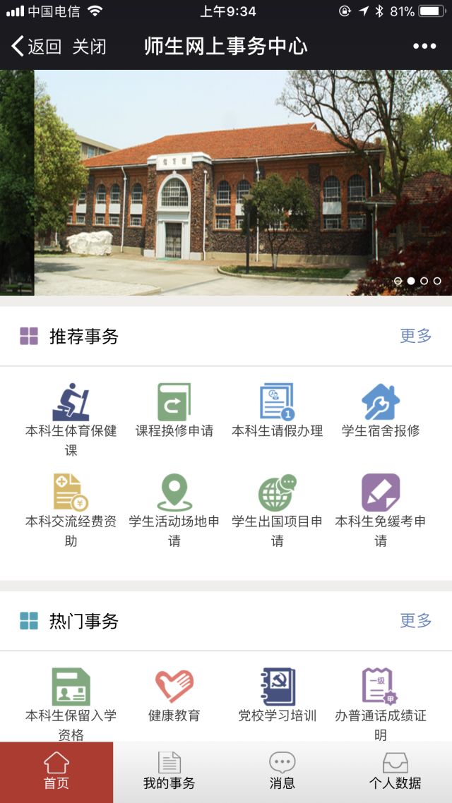 图:师生网上事务中心首页