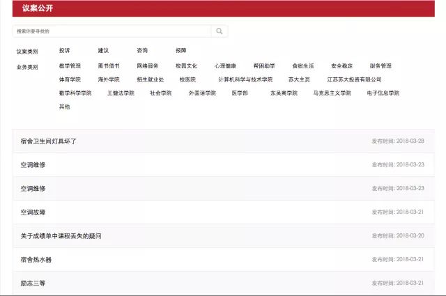 苏州大学“倾听学生之声,倡导民主议校”的体现。学生可以随时提交议案,通过师生网上事务中心送达负责单位的手中。全校师生可以随时阅读被别人公开的议案。
