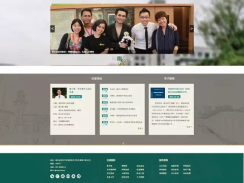 主页三处用到全屏背景,分别采用学校的风光虚化、建筑剪影、标志性建筑文泰楼局部,重在加强浏览者对学校的校园环境印象,同时起到大气的视觉效果。
