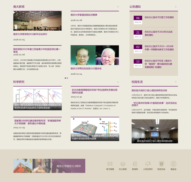 2016年1月1日,在辞旧迎新之际,我们满怀期待的迎来了南京大学新主页的顺利上线。