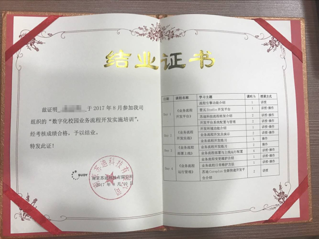 2017年8月7日-8月10日,由苏迪科技主办的“数字化校园业务流程开发实施培训”在南京苏迪科技总部顺利举行。