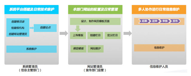 网站建设过程中,学校遵循“统一形象、统一标准、信息共享、统一管理,在数字校园整体规划下实现统一宣传体系建设”的建设目标,在定制的网站群基础系统平台上,采用了网站群的建设、维护多人协作建站和维护的机制,信息管理中心负责做好技术沟通,协助学校各部门做好相关平台建设、技术维护和技术支持,各部门网站管理员完成各自的站点建设和网站维护,各部门的信息维护人员负责做好内容的维护。