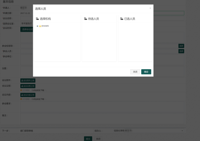 添加参会人员,在审核通过后系统会自动发送通知提醒给相应人员。