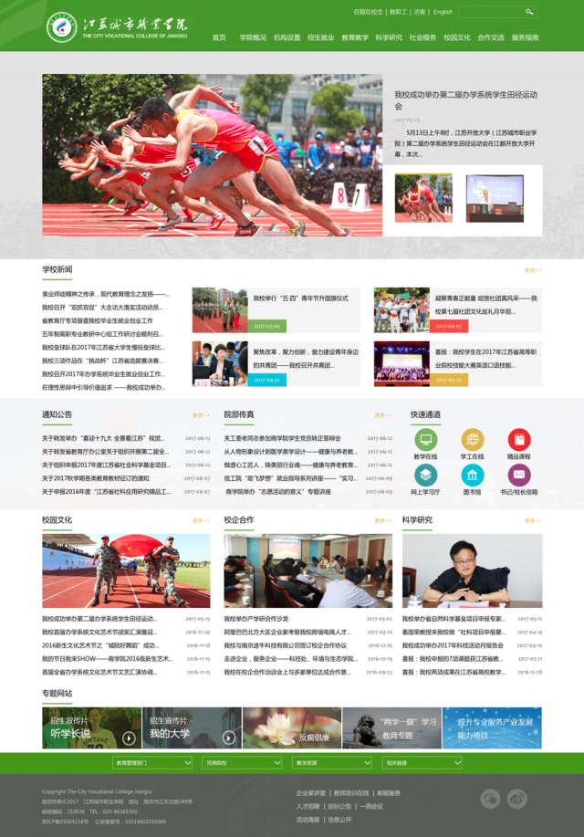 主站采用绿色为主色调,以艳丽的配色来体现学院的活力和开放。