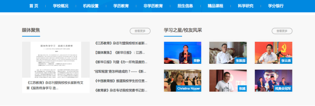 江苏开放大学的首页借鉴了国内外高校的设计经验,采取宽屏设计。