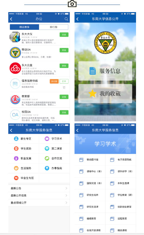 如果说东南大学2014年开始建设的信息公开系统代表了以《高等学校信息公开事项清单》为基础扩展,“信息聚合,面向公众”的信息公开的1.0时代,那么2016年移动信息服务APP的建设让东南大学信息公开迈进了“创新服务理念,主动为师生服务”的“互联网+信息公开”的2.0时代。