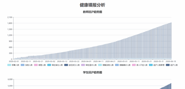 用数据展现学校疫情防控工作,利用可视化展示系统,将各类疫情防控数据进行可视化展示,以图形图表的方式更加直观展现疫情防控工作。
