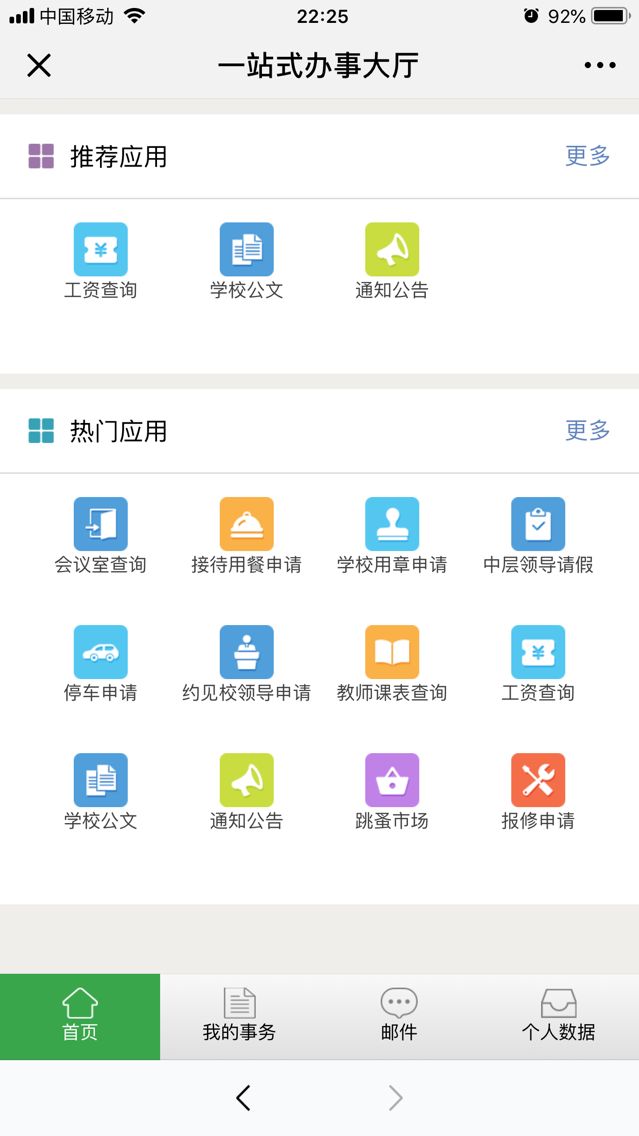 “碎片化”服务方式,面向用户提供更好的“一站式服务”体验。师生不需要记忆哪些是OA覆盖的“办公服务”,哪些是“办事服务”,操作更直观。