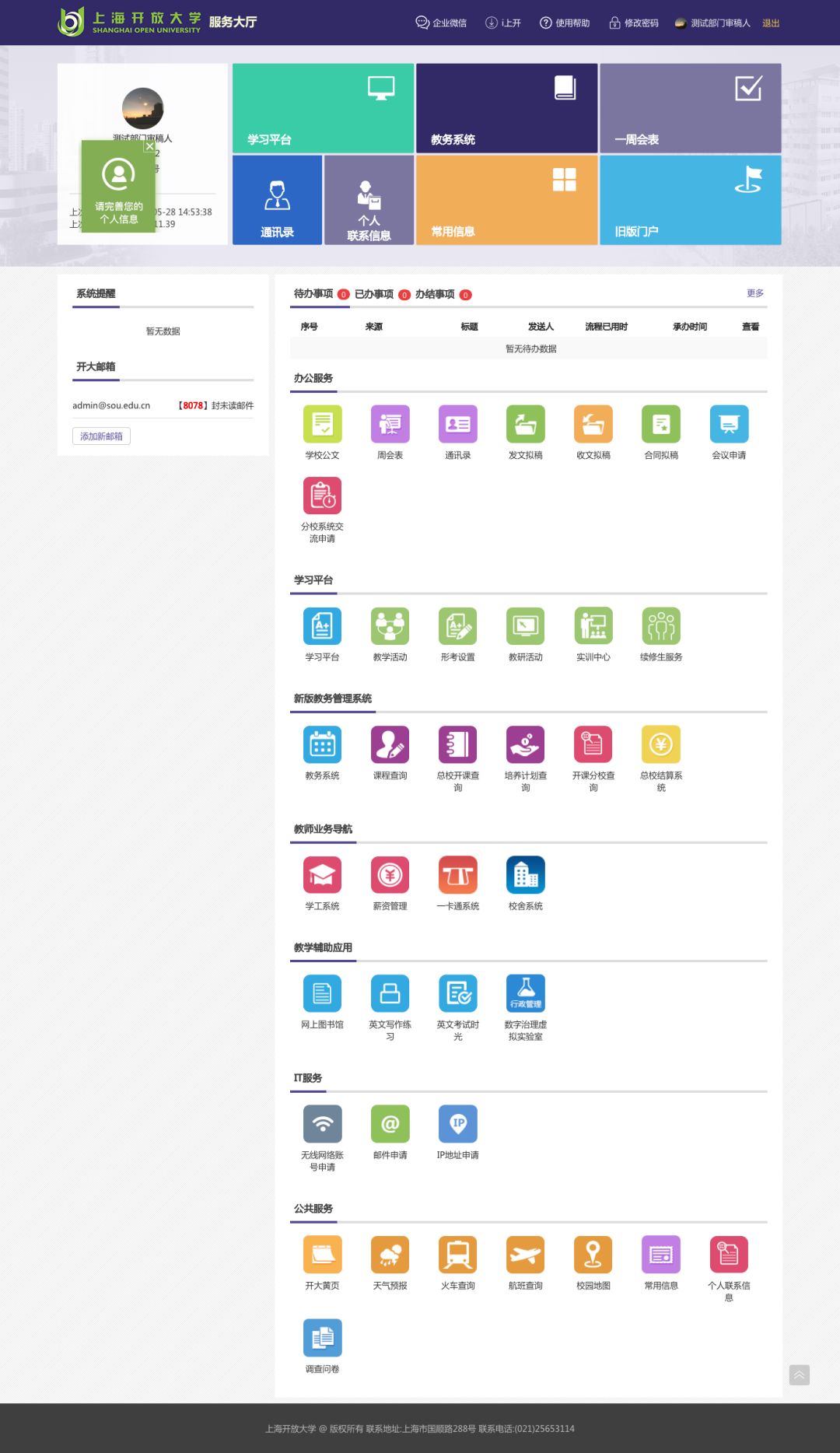 从服务角度:能够为师生提供统一服务入口、统一的UI体验、统一待办提醒、统一流程跟踪……