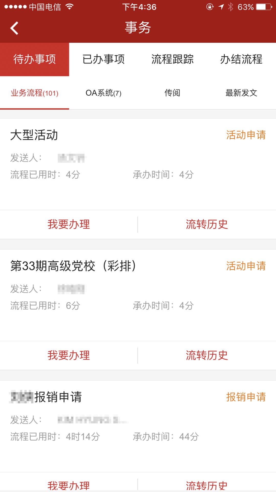 当然,通常移动OA以审核为主,也支持查看流转、意见和传文过程。