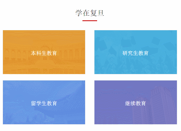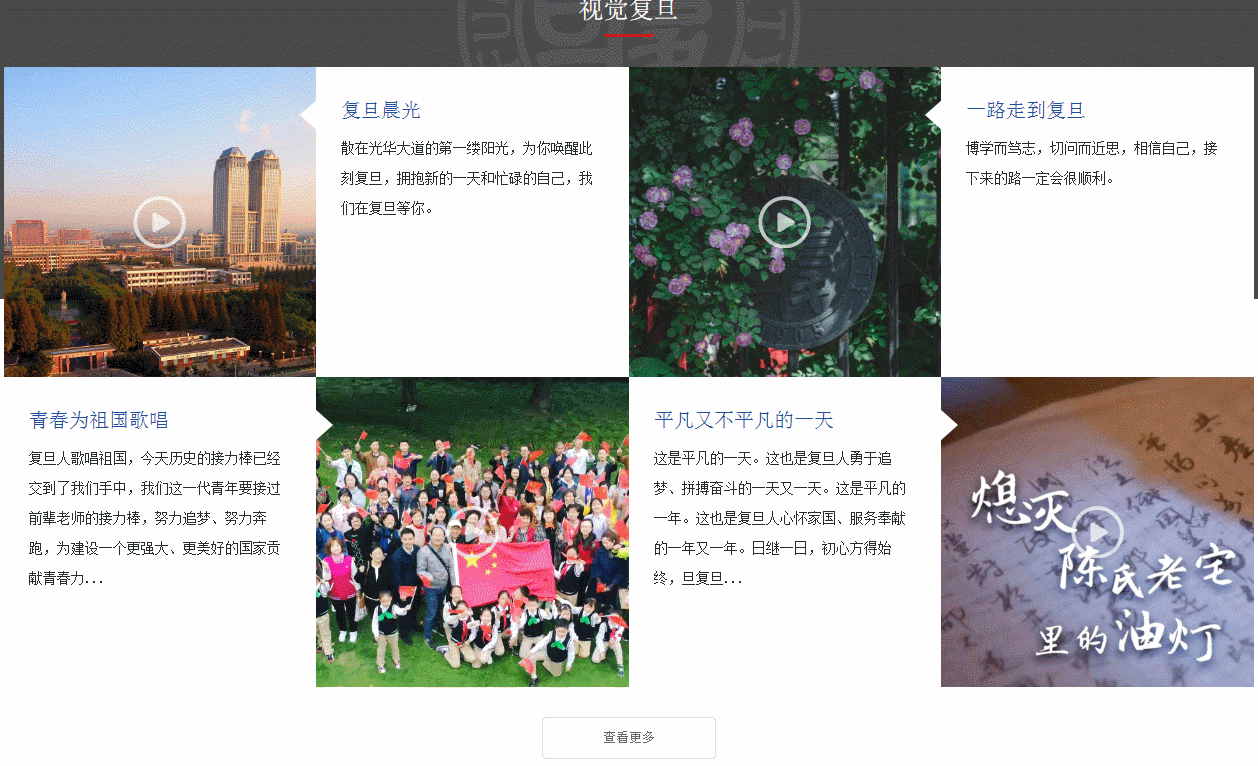 整个页面以蓝色和灰色为主色调,给人明朗清爽之感的同时,也显出厚朴稳重的质感,同时延续了复旦大学旧版主页的色系风格,不会显得突兀。