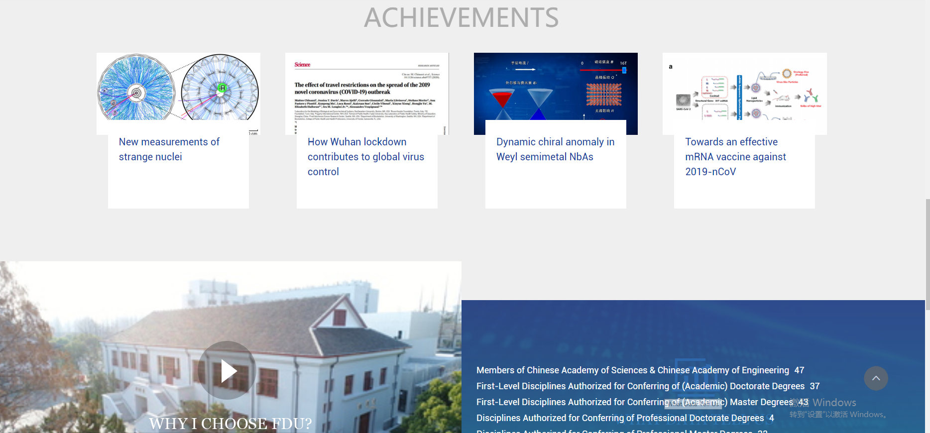 较之复旦中文官网,英文版主页新增了学术科研成就以及择校理由等模块,着重突出学校的科研实力,加强海外招生的宣传力度和影响力。
