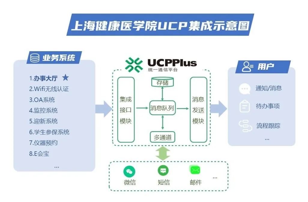 为大力提升师生服务感知,多厂家通力配合,完成了统一通信平台与10余个系统的集成,这样就将复杂多变的信息统一输入、整理,最终进行智能推送、个性化配置,满足师生个性化服务需求。