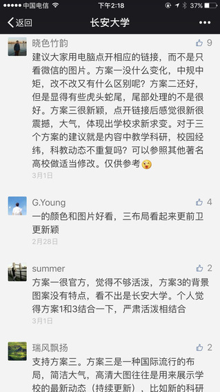在设计阶段,长安大学初选了三个设计方案,采用了广泛的投票调查确定主页风格,票选了目前的设计方案,并根据反馈意见进行了优化。