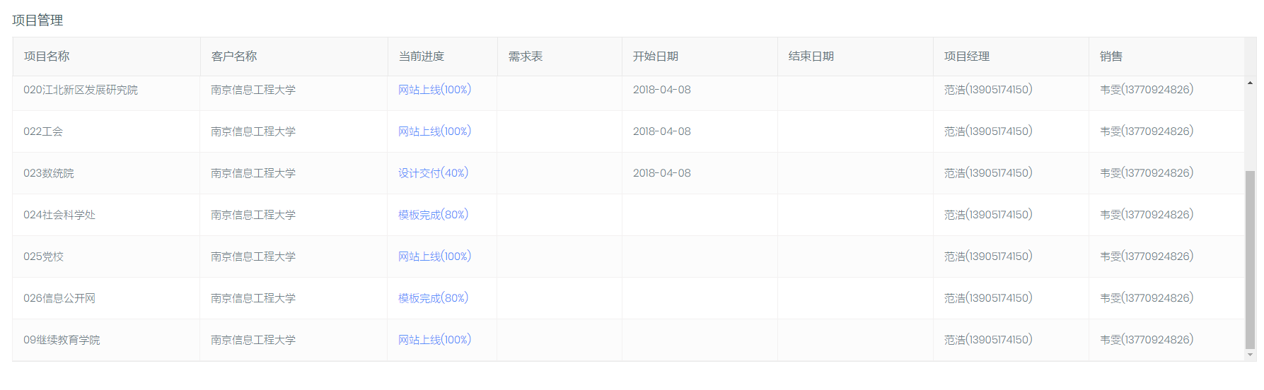提供项目进度查看,账号登入后可获知项目的进展情况以及相应的负责人,一目了然,保证整个项目实施过程的透明,有效把控项目的实施开展(移动端同步获取信息)。