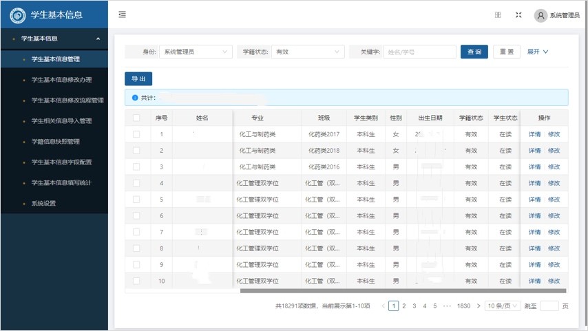 学生工作管理服务平台,优先为学校提供了基础数据的核对与校准功能,能够将学校标准与国家标准形成有效对应,更准确的进行信息管理。
