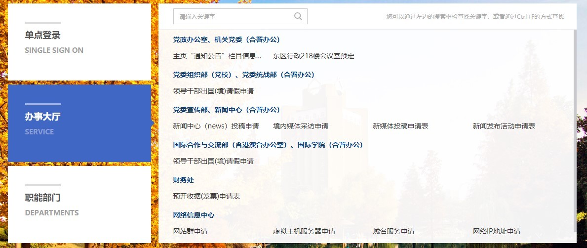 △全校信息化访问入口-办事大厅及单点登录系统聚合
